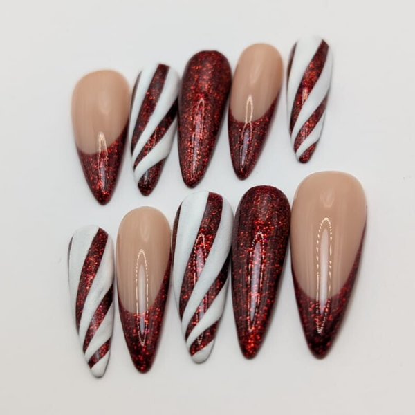 Color rojo glitter, decoraciones efecto azúcar, acabado mate y gloss.