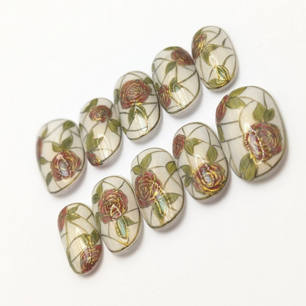 Base efecto perla y detalles en dorado, pintadas a mano, acabado gloss.